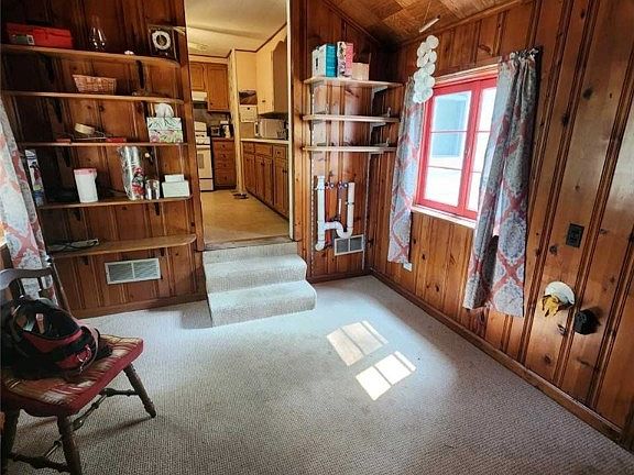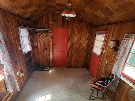 It you like privacy, this home is for you. This lovely ranch home is being sold with the adjacent property next to it. The large sunroom lets you enjoy the serenity of the surroundings. The family room has new electric baseboard heater and thermostat. There are two bedrooms and 1 full bath, with a new vent. A new roof was installed in October, 2022. There are two garages; an attached 1 1/2 car garage with new 100-amp electrical box with keyless entry and the second garage is a double car garage. New plumbing and electric have been updated. A walk-out basement door in the rear of the home. A new dusk to dawn light was also installed. The laundry is on the main level for your convenience.