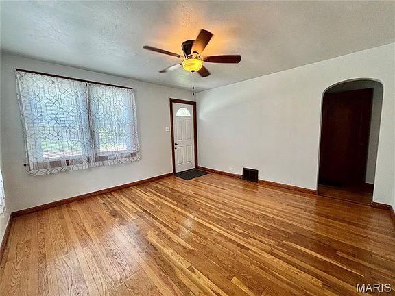 Charming 2 bed, 1 bath home has been freshly painted and new carpet installed in both bedrooms. Some original woodwork and hardwood flooring in the living room. The kitchen boasts an eat-in area and stainless steel appliances. Enter outside to a large covered patio and spacious fenced backyard with a 70x150 lot that backs to a wooded area. The full unfinished basement offers plenty of storage. Home features double hung windows, a new furnace in 2022, new air conditioner 2023, and aluminum fence in 2022. Agent Related