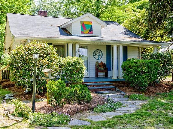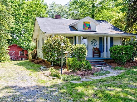 Adorable cottage on almost an acre of land. Covered front porch has plenty of room for your favorite rocking chairs and porch swing. The back yard has a huge deck and gazebo with a private feel. The house has a nice flow, and there is a vaulted ceiling in the living room for a spacious feel. Cute as a button kitchen with dining space that has an abundance of natural light including several floor to ceiling windows. Adjacent to the dining area is a great place for a cozy reading nook or office desk. The kitchen and bath have been updated with tile floors. Garage/Storage building would make a great studio, workshop or writer’s cabin. This home is convenient to Highways 52, 421, and I-40, and you can reach Innovation Quarter and Downtown WS in less than 10 minutes by car. Refrigerator, washer and dryer remain. See agent only for additional information.