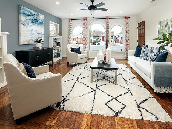 This gorgeous 2 BR , 1 BA home combines old-world charm with a host of modern conveniences. The living room has grand arched windows offering lots of natural light and features built-in shelving, recessed lighting, and hardwood floors. A formal dining room has hardwood floors and recessed lighting. The kitchen boasts Quartz countertops, tile backsplash, ample cabinet/counter space, recessed lighting, tile floors, gas stove, dishwasher, microwave & refrigerator. Updated bath has tile floors & oversized sink vanity. Other features include: Dual pane windows, built-in closet organizers in the BR's, central heating & AC, Nest thermostat, and a partial basement that offers additional storage. Washer and dryer are included. A detached garage has a bonus room or office space (not permitted) that was added by a previous owner. Manicured yards in front and back - and a tranquil patio area for entertaining and relaxing. This location offers easy access to freeways, shops & Backesto Park