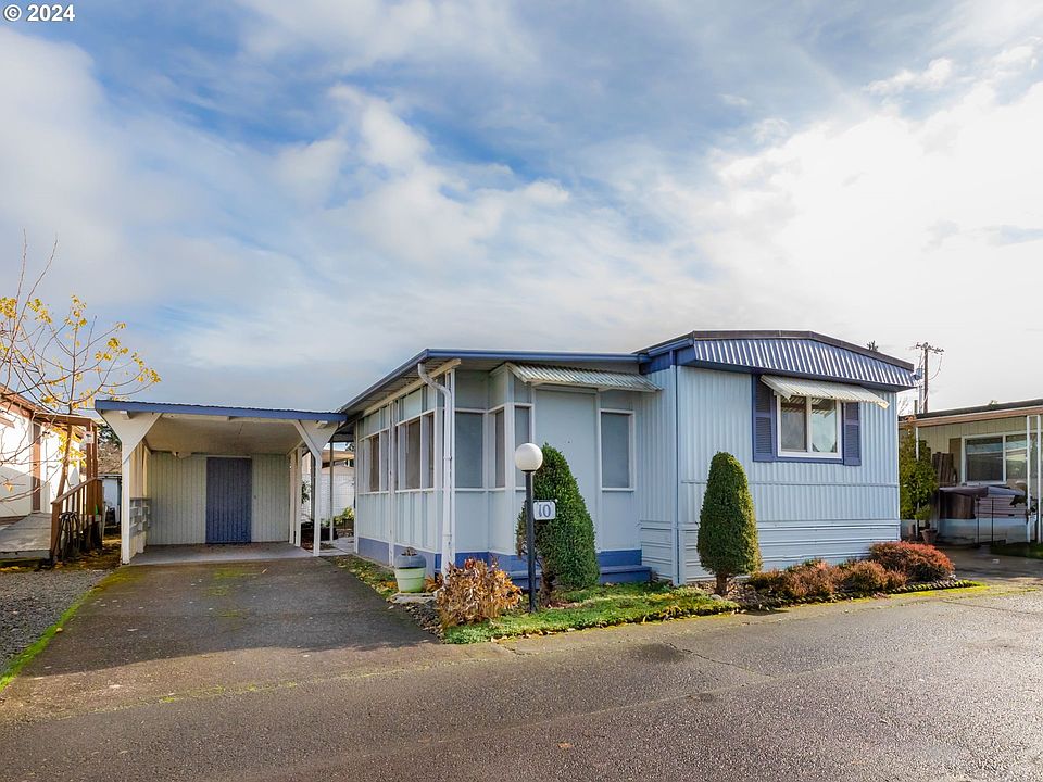 This charming 2-bedroom, 1-bathroom manufactured home offers a comfortable living area and a warm and inviting atmosphere. Equipped with a freestanding range and a dishwasher, the kitchen is designed for efficiency and convenience. Enjoy the outdoors with a covered deck and patio, perfect for relaxation. The property also includes an outbuilding and tool shed for additional storage. A carport provides sheltered parking for your vehicle. Situated in a friendly community, this home is conveniently located near local amenities, making daily errands and activities easily accessible.