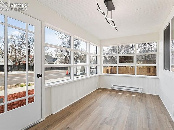 Come check out this gorgeous remodel! This home is nestled in a great neighborhood with an amazing view of Pikes Peak. A nice and cozy sun room upon entry with new flooring thought-out. Fresh paint, new appliances, new lighting, new windows, updated electrical, new tile, updated bathrooms, cute built-ins for storage and fresh exterior paint. This home is on a flat lot with alley access perfect for entertaining. Just minutes from downtown and local parks!