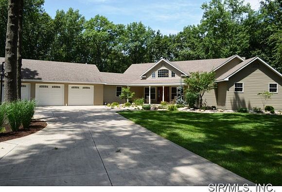 ONE OWNER CUSTOM BUILT LUXURY in the your own piece of 3 acre privacy in town! Gorgeous wooded lot, 40x55 new outbuilding with heated floors (no need to winterize your RV!) and cedar lined walls, custom inground pool heated by a wood burning stove and has a slide and an automatic pool cover. Inside you'll find hardwood floors throughout the living room with vaulted ceilings, wood burning fireplace, gorgeous kitchen with custom cabinetry and island, eat in kitchen, huge master bedroom and luxury bath, den (desk furniture to stay!), bedrooms 2 and 3 share a jack and jill bathroom and all bedrooms have walk in closets. A full basement is just waiting to be completed (bar is in along with a 3/4 finished bath and 2 bonus rooms that need ceilings). And don't forget about the ATTACHED 40x42 garage with 3 bays along with a back area great for a workshop AND lawn equipment. Covered front and back porches, geothermal system, and so much more!