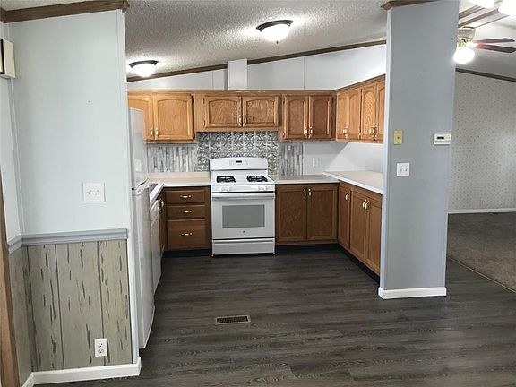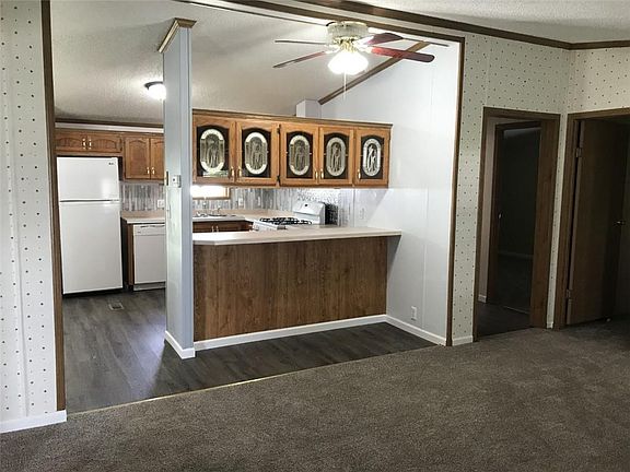 Adorable 3 bedroom, 2 full baths, with an open floor plan. This immaculate manufactured home is across from school in small town. This property is so clean!!!!! Nice sunny front porch to enjoy the sunsets in the evenings. Step inside to a large open floor plan with large living room adjacent to kitchen. The kitchen is very functional with room to enjoy cooking those special recipes. There is a large dining area with built in china cabinet for entertaining. The master bedroom is on the north side of home with 2 closets and large bathroom. The master bathroom has a shower plus garden tub for soaking after those long work hours. The 2 additional bedrooms on located on the south side of the home with a full bath beside for convenience. There is a nice utility room with outside entrance. Next to the kitchen is a large enclosed back porch with small storage room for freezer or collectibles. The property also a large 2 car detached garage with additional shed attached for vehicles or workshop area. The yard has beautiful trees and nicely landscaped. Don't pass this nice property by. Move in ready!!!