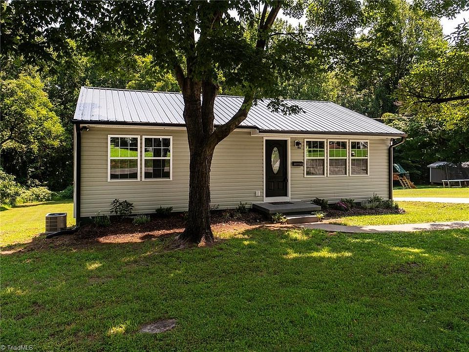 Step into charm and comfort with this adorable fully renovated 3 bedroom, 1 bath bungalow. The spacious living room welcomes you with a modern electric fireplace, perfect for cozy nights in. The kitchen boasts quartz countertops, gray cabinets, and black hardware for a sleek, contemporary look. Three great-sized guest bedrooms offer plenty of space for family or guests, while the updated full bath features a single vanity and tub shower. This home has been upgraded with new HVAC and hot water heater, ductwork , new insulation throughout, new windows, metal roof, and electrical, ensuring worry-free living. Enjoy the brand new deck for outdoor entertaining, and take advantage of the parking pad or space for a metal building. Located just outside of downtown Mebane and close to the new bypass, this home offers convenience and style in a desirable location. Don't miss out on this opportunity to make it yours!