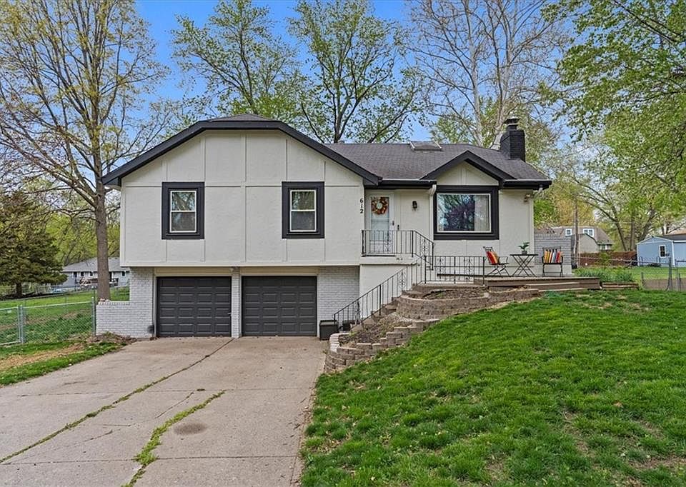 A great starter home setting on 0.34 acres so plenty of outdoor space!  Updates include: remodeled bathrooms (May 2022), new sliding glass doors w/built-in blinds & interior garage door (March 2022), new exterior paint (August 2022), staying with the home is a newer refrigerator (2020), air ducts cleaned (2021), and the final bonus is pre-paid lawn service (fertilizer/bug treatments) until Feb 2024!! Also, seller is offering a $2,000 carpet allowance!!! Great location within minutes to shopping, highway access, and NKC schools!! Note: Selling In Its Present Condition box 1