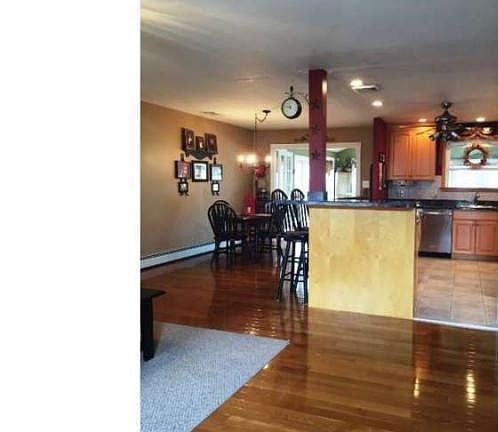 Immaculate home with open floor plan! Custom kitchen open to dining room and living room which includes brand new quiet dishwasher, tile floors, and (3) lazy Susans and appliance garage (optional wooden lockers in laundry room). Hardwood floors in FR/DR and 40x20 great room with vaulted ceilings, skylights and ceiling fans. 1 year old roof, fenced yard with shed, 1 car garage with off street parking for 4. Potential 4th bedroom in lower level where office/den is located and also potential full bath off laundry room where half bath is located. Refrigerator, Oven/Range and Window Treatments in LR, Great Room and Office all included. Ready to move into home, don't hesitate.