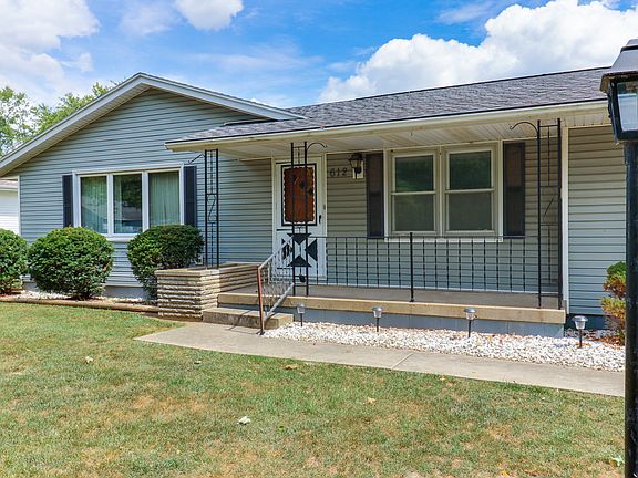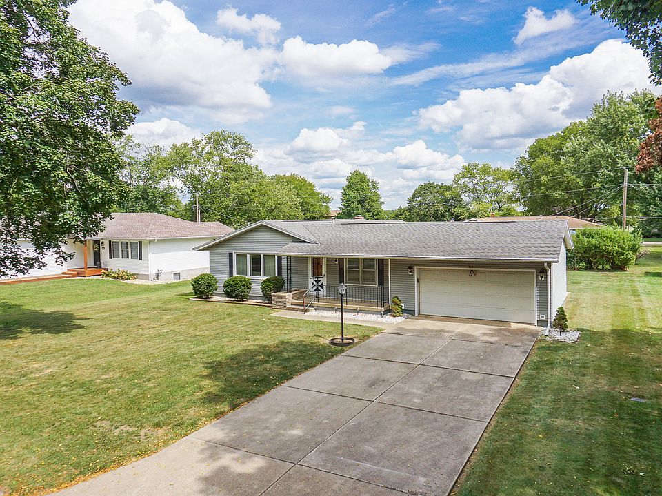 Beautiful One Owner, three-bedroom, ranch home. Custom designed and hand built to last, by local craftsmen! Great floor plan! You will love the excellent flow! Big living room with vinyl replacement picture window and built in shelving. Three good sized bedrooms, full bath and half bath, big closets and basement stairs all accessed from a unique rear hallway leading back to eat in kitchen. Check out the oversize two car garage with tons of storage, huge, finished basement with family room, rec room, laundry room, and bar, plus backyard patio with doors from garage and kitchen. Many improvements already done for you. Upgraded furnace with central air, great looking vinyl siding, nearly new water heater, water softener system, new roof in 2007. This property has loads of curb, appeal, and is situated on a large lot in a very desirable part of town. Close to gas and groceries, with easy access to either interstate 155, or US 136.. Won't last long. They don't build them like this anymore!! Come check it out.