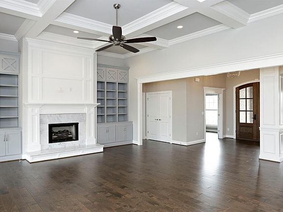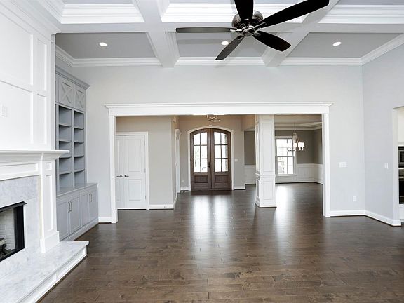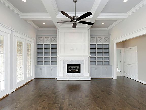New Construction by Collier Custom Homes, Inc. in Clays Crossing. This energy efficient brick ranch with basement has 4 bedrooms, 4.5 baths, with the very popular open floor plan. Partially finished basement with 1 bedroom & 1 bath has great potential. This beautiful home has a family room with coffered ceiling, gorgeous painted gray built-ins on both sides of the fireplace, quartz and marble countertops, covered porches, specialty ceilings and many extras!
