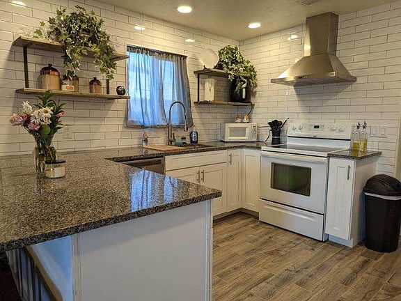 This 3 bedroom 2 bathroom home is adorable and has a remodeled kitchen with new cabinets and granite counters plus master bathroom that has been updated with a custom walk-in shower, indoor laundry room, new tile floors. there is a large backyard with alley access, automatic sprinklers in front and back yards.. Square Footage of home and bathroom count differ from tax records. If important buyer to verify.