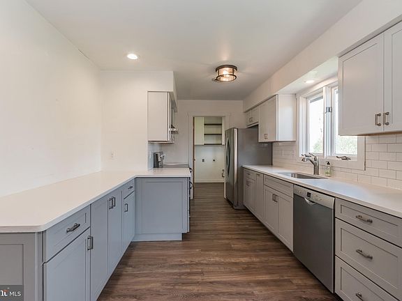 MULTIPLE OFFERS. Highest and best due by Monday at 8 PM. Nestled perfectly in the mature wooded neighborhood of Woodbrier Manor, this lightly wooded property features a beautiful move-in ready rancher built with natural materials and accented with a brick foundation and chimney. The three bedroom and two full bathroom home has been renovated and upgraded throughout while highlighting its character features like the cathedral ceilings, large casement windows, and wood burning stove. The front entry foyer flows into the open living area with its high ceilings and low-maintenance LVP flooring, nestled by the warmth of the Timberwolf fireplace - a great area for gathering. The open floor plan leads into the dining area and a kitchen that features a beautiful quartz countertop, subway tile backsplash, upgraded KraftMaid cabinets, Bosch dishwasher, and matching stainless steel Whirlpool oven and refrigerator. The split floor plan provides a private primary bedroom that features a large walk-in closet with custom shelving built-in and an en suite bathroom with updated vanity and LVP flooring. The two large guest bedrooms share an updated guest bathroom with similarly updated vanity and flooring. Extra space for a workout room and storage can be found in the basement along with access to the large garage with included shelving and workshop space. The exterior has been nicely landscaped, highlighted by a natural outcropping of rock and planted arborvitae trees for added privacy. The back yard is very pet friendly and has a large deck surrounded by wood board fencing with a vinyl mesh lining, but there is green space on all four sides of this home to enjoy. This property really has it all; schedule an appointment now to secure a showing time before it's too late!