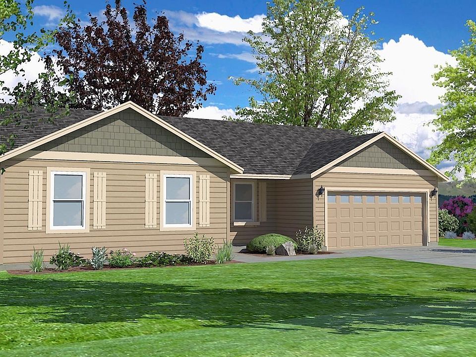 MLS# 266506 At 1623 square feet, the Kelso is a mid-size home that makes the most of its single-story layout. The open kitchen looks into the spacious living room and formal dining area under vaulted ceilings, providing ample room for relaxation and entertainment. Four sizeable bedrooms are located down a private hallway and share a full bathroom. They are far removed from the privacy of the expansive main bedroom, which features a dual vanity ensuite and his-and-hers closets.