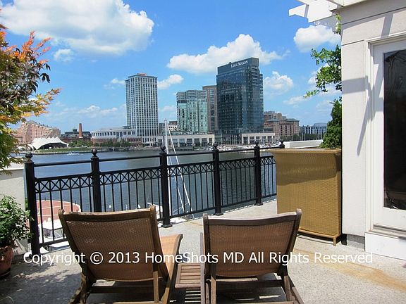SPECTACULAR WATER & CITY VIEWS FROM EVERY ROOM IN THIS BEAUTIFUL 2BR-2.5-BA PIER HOME ON BALTIMORE'S FAMED INNER HARBOR. 2-CAR GARAGE, FOYER, ELEVATOR, 3 BALCONIES, ROOF-TOP DECK, FAMILY ROOM, WET BAR, WOOD FLOORS, GOURMET KITCHEN, GRANITE COUNTERS, STAINLESS-STEEL APPLIANCES, MASTER SUITE W/LUXURY BATH & WALK-IN CLOSET. CONVENIENT TO DOWNTOWN, FEDERAL HILL & I-95. IMAGINE...YOUR NEW HOME!