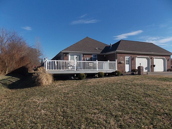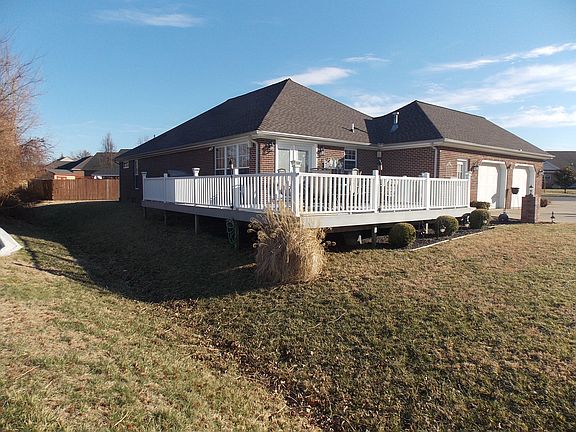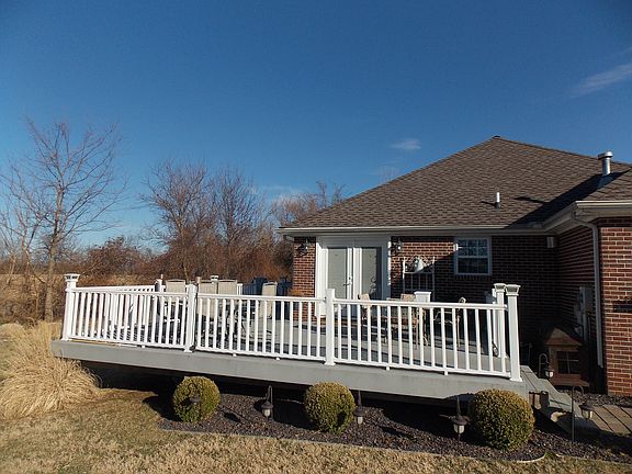Three bedroom, two bath, brick ranch home at end of culdesac in Chimney Hills subdivision. 9' ceilings in living room and office/den, bonus/play room, two car attached garage, large composite deck with vinyl railings overlooking miles of farm land.