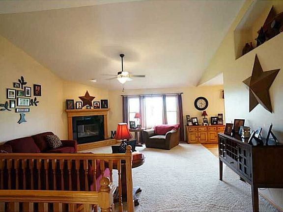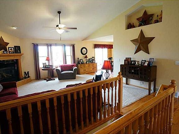 Welcome home to this nicely decorated warm ranch with 5 bedrooms, 3 full baths, 1 half bath and finished lower level. Kitchen includes hardwood floors, breakfast bar and dining area, vaulted ceilings in the living room, master has walk in closet and private bath, hardwood floors through out and ceramic tiled bathrooms. Fenced back yard and huge 3 car garage. Small town living at it's best!