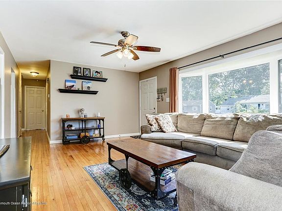 Charming ranch on a large lot located on a quiet, private street in Point Boro. This 3 bedroom, 1 bath home offers over 1,000 square feet of living space along with a deceivingly large partially finished basement with recessed lighting and tons of storage space. There is plenty of room for a pool in the huge yard, perfect for entertaining, with a deck, tiki bar and fire pit. Also, plenty of room for an addition if desired. Updates include: newer furnace, hot water heater, AC condenser, insulation (2017), bay window (2019), partially finished basement (2020), porch rails, and french drain system (2019). 10 min drive to Point Pleasant Beach and parkway. Centrally located between 88 and 70. Make your appointment now! *Grass digitally enhanced*