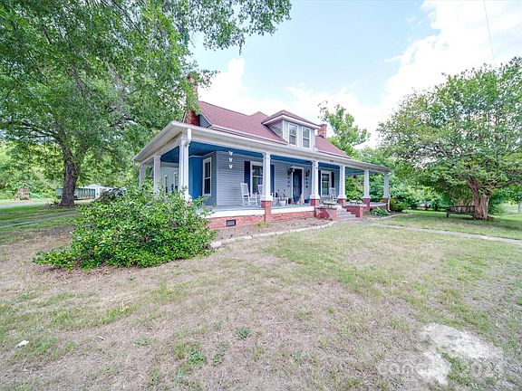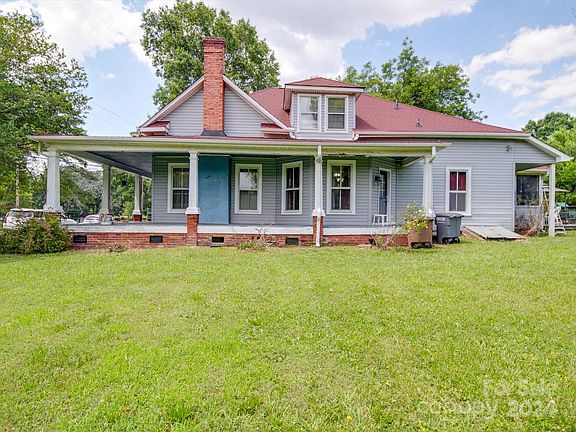 This charming historic home was constructed in 1900 and named the "Newsome House". It features an intersecting gable & hipped roof with a central hip roofed dormer. Covered porch wraps 2 bays on the North & South Elevations. Original lozenge pane over lights in front windows create a beautiful display of color on sunny days. Lovingly remodeled throughout the years including some updated electrical, plumbing, vinyl siding, roof (2016), kitchen floors replaced in 2019, upstairs heat pump replaced in Feb. 2020. Large kitchen w/crisp white cabinets, center island, stainless appliances including refrigerator, pantry, breakfast area & side entry to covered porch overlooking a beautiful 1.42 acre lot. You're sure to love the large bathroom w/Whirlpool tub, formal living room & dining room each with its own fireplace, oversized laundry room, gleaming hardwood floors, cozy back porch & over 760 ft of covered porch waiting on new owners to come sit & rock awhile. Needs a little TLC, Sold As Is.