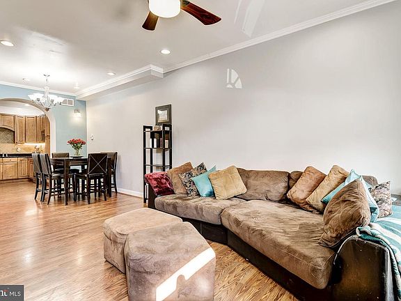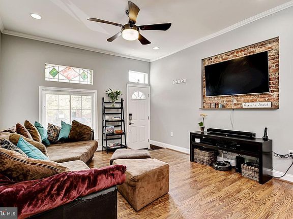 Stunning Rowhome in Canton. Walk to restaurants, the Square, the Canton Waterfront for food and music festivals, the grocery store, or Patterson Park - just steps away. This home boasts Lofty Windows, Light Filled Interiors, and Design-Inspired Features Throughout; Living and Dining Room Combination Embellished with Classic Crown Molding, Exposed Brick Wall, Sconce Lighting, and an Impressive Arched Doorway Leading to the Gourmet Kitchen; Inspire your Inner-Chef in the Gourmet Kitchen Equipped with Sleek Stainless Steel Appliances, Granite Countertops, Decorative Backsplash, and Ample 42 Cabinetry; A Powder Room Completes the Main-Level; Upstairs Find the Master Bedroom with a Recently Remodeled Luxurious En-Suite Bath; A Generously Sized Bedroom and a Recently Remodeled Full Bath Conclude the Upper-Level Sleeping Quarters; Downstairs Discover Another Sizeable Bedroom, a Full Bath, and a Considerably Sized Laundry Room with Easy Access to the Rear Patio; Recent Updates: Roof, Kitchen Backsplash, A/C, Bathrooms, Upper-Level Engineered Click Lock Hardwood Flooring, Lower-Level Carpet, Fresh Paint, and More! Exterior Features: Patio, Exterior Lighting, Sidewalks, Street Lights, and City Views!