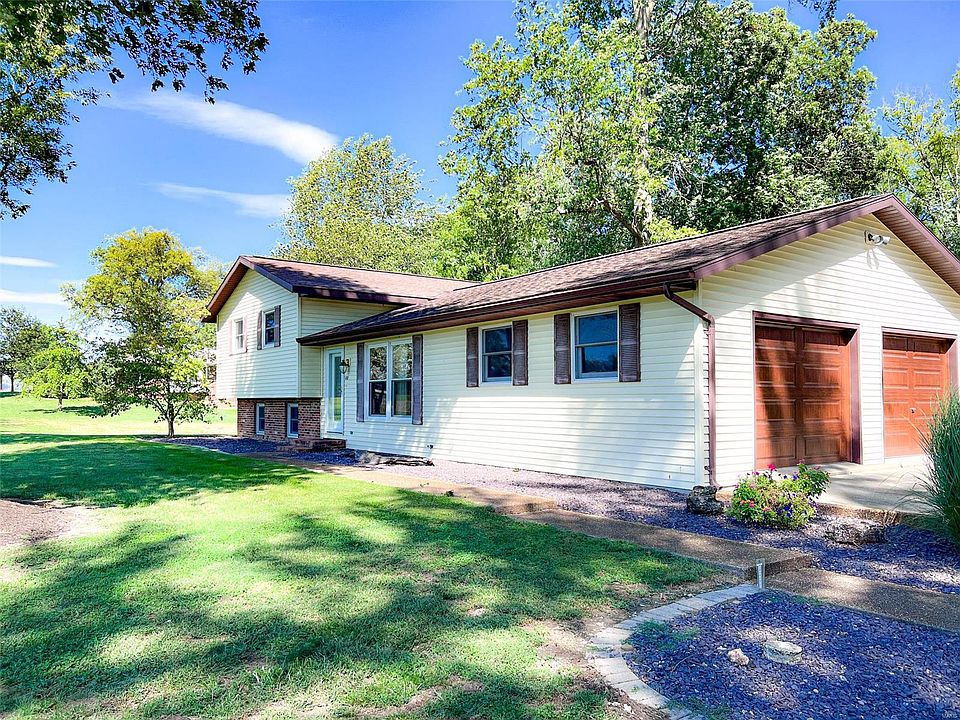 Beautiful, well maintained home on stunning tree lined double lot! Peaceful, park-like setting backing to small creek & mature trees. Bonus 2 car detached workshop garage in addition to large 2 car attached garage. Vaulted wood sunroom with atrium windows overlooking the serene backyard. This ideal country setting is less than two blocks from Okawville School District #10 offering grades K-12 & directly across the street from open field behind the private school. Newer wood flooring on the main level with large living room space, designated dining room and kitchen with abundance of cabinetry and pantry space. Upper level bedrooms and bath. Owners suite offering access to the home's private wood deck overlooking the grounds. Finished lower level with office space (not pictured) in large family room with fireplace. Additional full bath and laundry room. Walkup basement door leads to brick paver landing area and perfectly manicured landscapes. This inviting home is move in ready! Additional Rooms: Sun Room