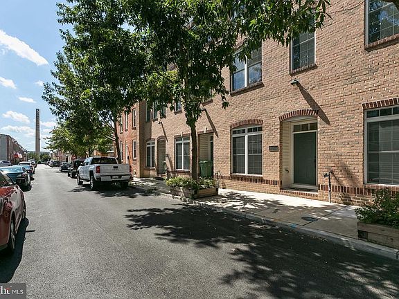 WELL MAINTAINED CANTON GARAGE TOWNHOME WITH 4 CAR PARKING - this beautiful townhome on quiet tree lined street just off Patterson Park features a two car garage and a two car parking pad, open main level floor plan with hardwood floors throughout, crown molding, eat-in island kitchen with granite countertops and tile backsplash, convenient half bath, separate dining room and deck off of the living room. Upper level features two bedrooms suites, hallway laundry room, luxurious owner's bath with double bowl vanity and separate tub/shower with massive walkable rubber membrane roof top with incredible views!