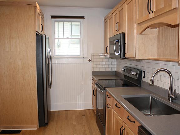 This gorgeous brick foursquare features newly refinished hardwood floors, a new custom kitchen, and newly remodeled bathrooms. It also has a Front Porch, a Private Fenced Back Deck, Limestone Fireplace and a Full Basement. Central Air, Washer and Dryer, Dishwasher, and Lawn care are Provided! Neighborhood Parking is available.