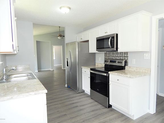 take a look at this adorable home! The large living room is open and there is LVP flooring throughout the entire home. The kitchen has brand new white cabinets and countertops, and stainless steel appliances. The Master bedroom have its own private bathroom and is a nice size. The other 2 bedrooms are also a good size as well! Enjoy the fenced in yard and patio for those summer BBQ's. Save on gas and money with only minutes to restuarants, Camp Lejeune, shopping and schools! (There are a few minor repairs inside that need to be completed and the yard is being mowed in the back but will be complted prior to move in)
