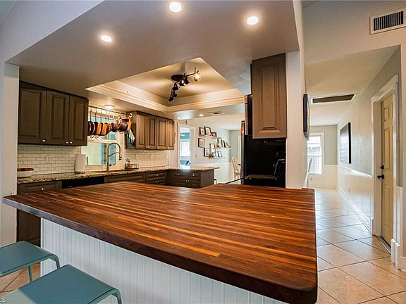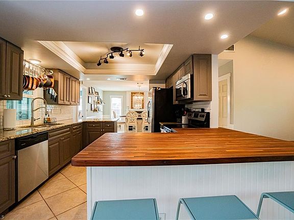 Masterful design and modern luxury are uniquely embodied in this 3 bedroom, 2 bathroom home. Including a formal dining room and a wood burning FIREPLACE. This generous floor plan spans over 1,600 SF under air with 3,292 total SF. The home is graced by an open floor plan, the expansive living room opens to the awe-inspiring patio and solar heated pool which can be accessed from 2 different rooms in the home. Pool area encompasses plenty of deck space inside the screen enclosure. The master bedroom is complete with a walk-in closet that includes California cabinets, an opulent ensuite bathroom with a glass shower. Every detail was carefully selected and quality crafted. Highlights include, a gorgeous custom walnut butcher block counter-top (food grade), granite counter-tops, 18in. ceramic tile, Pergo laminate flooring, crown molding, wood cabinets, a stylish kitchen with a high-end stainless steel appliance package.The 2 car garage leaves plenty of space for a workbench and additional storage. This home is conveniently located 5 minutes from the midpoint bridge!! HURRY, THIS HOME IS UNIQUE AND WILL NOT LAST!!