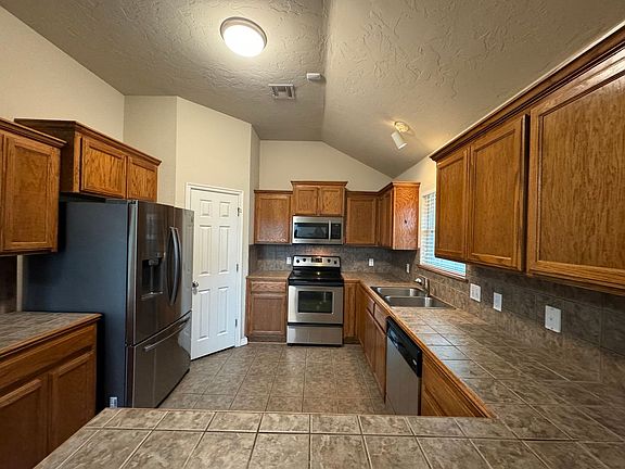 Wonderful 3 Bed 2 Bath home in popular Apple Valley addition of Moore, OK. Unwind in the backyard overlooking the HOA pond and fountain. Very open floor plan. 3 bedrooms including large master bedroom with walk-in closet, separate tub, and shower! Dining room open to living area with corner fireplace w/gas logs. Kitchen includes pantry and breakfast bar all open to living room. 2 car garage has inground storm shelter and good attic storage. Living room, hallway, and dining room have newer wood laminate flooring.