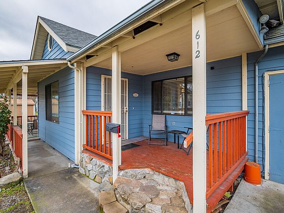 Charming home located just minutes from downtown Grants Pass! Perfectly set on a .12-acre corner lot sits this adorable two-bedroom, one bath, 865sqft cottage style home is ready for the taking. Enter from the welcoming front porch into a cozy floorplan that includes a living room with french doors that lead to the covered patio, a functional kitchen with stainless steel appliances, an eating area, two bedrooms, one bathroom, a laundry area and a bonus room above the garage, perfect as a guest room and/or office. Additional amenities include an energy efficient gas heating and air system plus a hot tub under the covered patio. So much potential here on this spacious corner lot with two storage sheds, RV parking, a small garage/workshop and plenty of room for a garden. All this conveniently located just minutes from shopping, restaurants, and District 7 Schools! Possibilities are endless for first-time home buyers, investors or whoever! Call today to schedule your appointment!