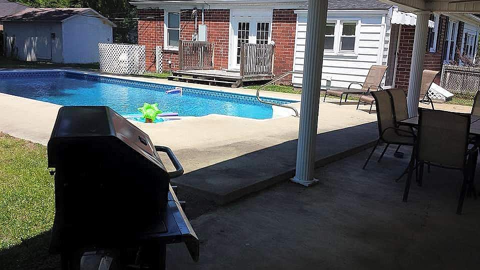 OUTSIDE CITY LIMITS! 3 BR Brick Bungalow, HW/Tile/Vinyl, '19 S/S Appl inc Refrig, LR w/FP, newer HVAC,Roof 2011, Laundry Room,Remodel bathroom, Nice Inground Pool w/newer liner, new pool pump 1-car detached garage, wired det storage bldg/workshop, great covered detached back porch - great area for entertaining family & friends, nice plantings, Lots of updates. Buyer/Agent must verify all pertinent info nec in decision making process; i.e., SF, age, lot size, schools, zoning, etc.