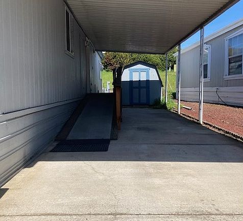 Large Price Reduction on this Nicely kept 2 bedroom, 2 bath home located in Rose Terrace MH Community (55+ Park). Large living room, and a dining room area with built-ins. Has a separate family room with slider out to the 8 X 32 covered deck. Kitchen is well equipped with an abundance of cabinets and counter space, newer dishwasher, touch flow faucet, a desk area and eat at counter. Laminate flooring through the living, dining & family rooms. Larger master suite with spacious walk-in closet. Master bathroom has dual sinks, large walk-in shower & spacious built-in cabinet. Exterior is low maintenance with mainly rock, small tiered area in the back for gardening. Storage shed and covered area for storage. Ramp in carport can be removed, steps underneath. Space rent includes water, sewer & garbage. Buyer to obtain park approval directly with Rose Terrace MH Community Manager.