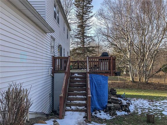 Many updates! Village Outskirts w/PRIVACY! Snack Bar ,Pantry&Ceramic floor! Eat in Kitchen/Breakfast nook with wood floor & FRENCH SLIDERS to 12'x24' backyard Deck plenty of room to entertain! Gorgeous wood burning fire place insert in living room! 2 spacious bed rooms on 1st floor! 1 used as a large laundry room on first floor! Basement has hook up and separate laundry area! Full Bath on 1st floor-2 Large BR on 2nd floor Includes GORGEOUS MASTER SUITE w/2 FRENCH Dr Closets! FABULOUS Full Mstr Ba! Walk-in ATTIC STORAGE! Updts Incl Furn&CA'02/H2O Htr 2018 Bow Wind&Frnt Dr '08/Roof&Gar T/O '11! W/O partial finishes Bsmnt with Potential! 12'x16' Shed! Concrete driveway new in 2014! Att Garage CLOSE TO AMENITIES! Patio area on side of garage!