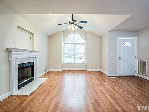 This Wake Forest one-story offers a deck, a fireplace, and a one-car garage. Upgraded features include fresh interior paint, a new HVAC, and new carpet in select rooms.
