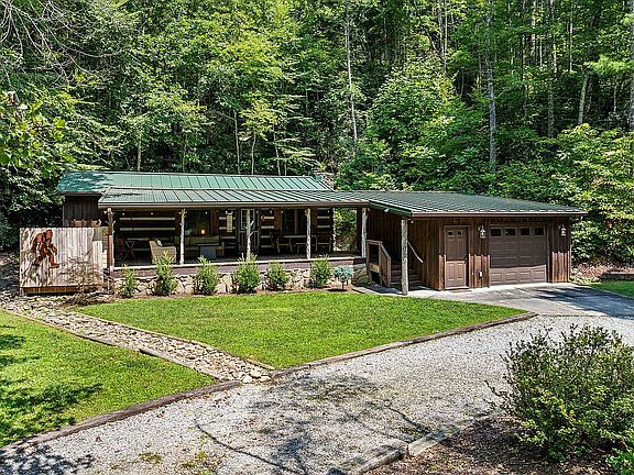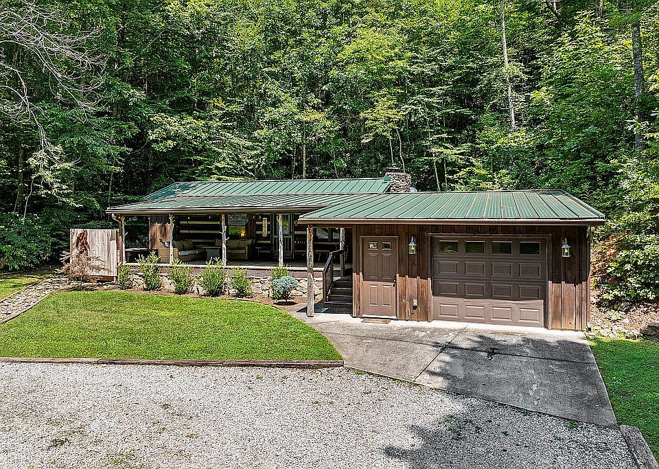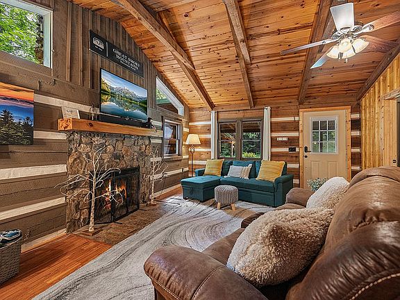 This spacious peaceful log cabin is on 1.4 wooded acres and located in Stonegate - a beautiful, gated community. It has many modern touches as well as a new standing seam metal roof and updated kitchen. As you walk up to the cabin you are greeted with an amazing front porch with 2 rocking chairs, a lounging sofa, fire pit and private hot tub. The kitchen is well equipped with all new appliances. The living room has a wood burning stone fireplace with an electric insert. Each spacious bedroom has its own connecting bathroom. The finished one car detached garage could be an excellent game room, workshop or extra storage. The cabin is just minutes from the entrance to the National Park and an easy drive to Pigeon Forge, Gatlinburg, Maryville, Knoxville and airport. Note: This cabin is fully furnished but arcade, one of the 2 patio sofas, and all linens and towels do not convey with sell.