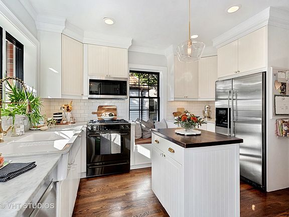 Historic Jewel Park Cape Cod on large double lot. This charmer features many vintage treasures including hardwood floors, 2-panel doors, lush moldings & 8'+ ceilings. Great curb appeal with brick exterior, covered entry with bluestone porch, window boxes & brick paver walkways. Gourmet kitchen features white beadboard cabinetry, marble countertops, subway tile backsplash, farmhouse sink, stainless steel appliances, butcher block island, hutch & NEW brass faucet, pendant light & hardware. Entry foyer, living room with wood burning fireplace & Anthropologie shelving, dining room with built-in corner cabinet, updated powder room & bright heated sunroom/mudroom with NEW built-in hall tree bench. Master bedroom has a sitting area/nursery & updated master bath. Two more bedrooms up share the hallway bath with claw foot tub. The finished lower level with walkup exterior access offers recreation room, laundry area & 4th bedroom or potential home office. Original windows & front door were recently refurbished, NEW smart thermostat, NEW hot water heater & NEW water softener. 1.5-car garage plus carport that doubles as perfect outdoor entertaining space. Mature trees, professional landscaping & NEW fence. Village location close to Metra, Park District, shopping, restaurants & A+ Barrington schools.
