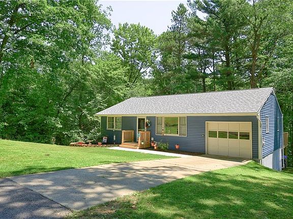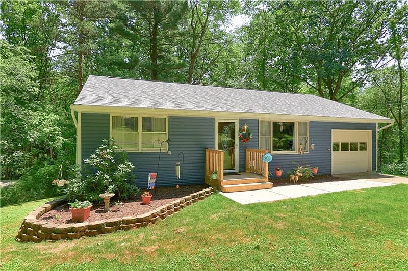 Great Starter home or downsizing. Clean and Neat and Updates Galore!! In the Boro but a very RURAL setting. Private back yard and deck=no one behind you. Green wooded views from you deck. One floor living! All the improvements have been down for you! In last couple years New roof & gutters and Downspouts, New HVAC, New Deck & Porch, New Hot Water Heater, New Siding and front door, New Carpeting, New Kitchen, New Bathroom, Wow...it has all been done. There is room for storage in the garage and tons of potential in the unfinished basement.