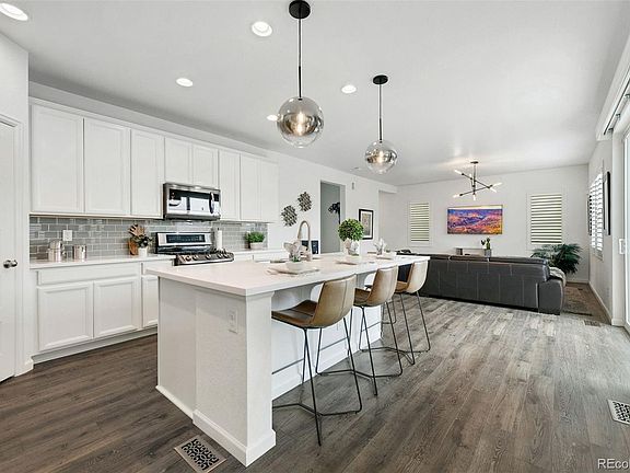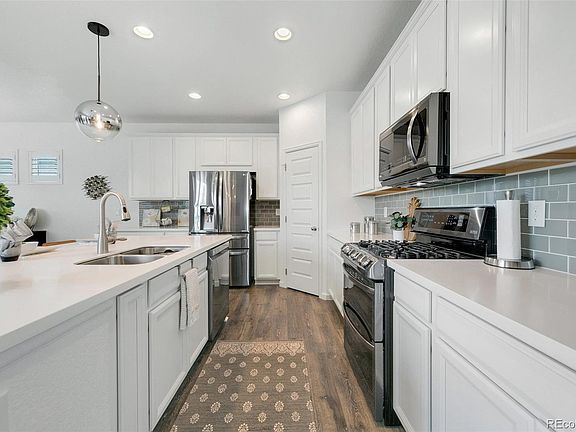 Welcome to this meticulously maintained two story home in Broomfield’s sought after Palisade Park! The home was built in 2018 and you’ll immediately notice the beautiful upgrades. Luxury vinyl plank flooring greets you as you enter the home and continues throughout the living room, kitchen, and dining room. The high ceilings and large windows flood the open concept floor plan with tons of natural light. The home also features beautiful plantation shutters making it easy to add privacy when desired. The kitchen will please any chef with quartz counters, high end black stainless steel appliances, pantry, and a large island for lots of extra prep space. Enjoy quick meals at the breakfast bar seating right in the kitchen, or host larger groups for the holidays in the adjoining dinning room. You can take the entertaining outdoors too since the kitchen is steps aways from your large patio. Makes it easy to keep an eye on the backyard while cooking as well. Upstairs you’ll find three bedrooms. The primary bedroom features a stunning en-suite with dual vanities and nicely upgrade shower. The two secondary bedrooms get their own full bath. The laundry room is conveniently located near the bedrooms making loading and unloading quick and easy. You get all of this with a park in the neighborhood, Children’s Hospital right down the road, and all the shops and dinning along Hwy 7. You are also close to the Denver Premium Outlets, Orchard, Top Golf, and more. Retreat out of the big city while being less than 30 min from Denver or Boulder. Book your showing today!