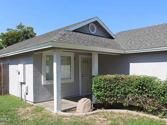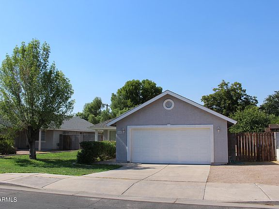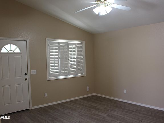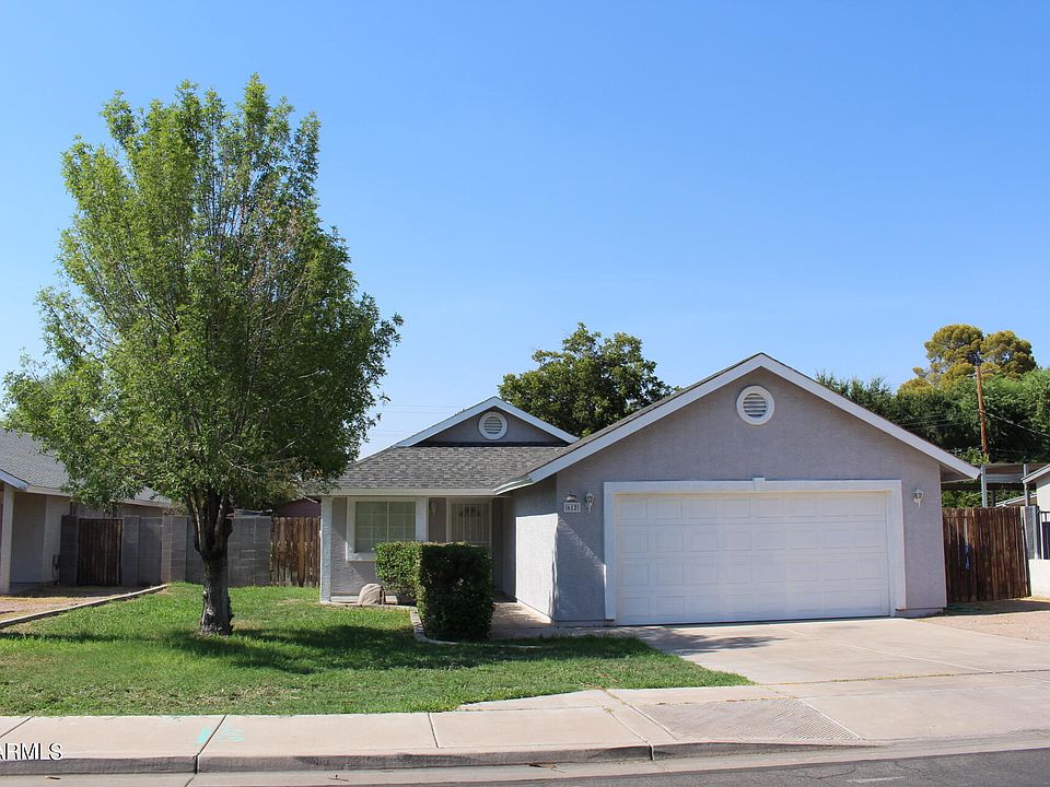 Attractive 3 bed, 2 bath home on large lot with NO HOA fee. Comfortable living room with shutters next to kitchen with abundant cabinetry, new counter tops, pantry and eating area. Master suite has large bedroom with vaulted ceiling, huge walk-in closet with shelving. Master bath has walk-in shower. All bedrooms come with ceiling fans. Hall bath has tub/shower combo unit with large vanity. Spacious backyard with block fencing, RV gate and room for a pool. Irrigated backyard means lower water bills. Uncovered patio by the kitchen is perfect for a BBQ and covered patio off master bedroom provide a private outdoor retreat. Two car garage with shelves give extra storage. Home has been recently painted inside and out and has new vinyl plank flooring. Easy access to the US 60 and light rail.