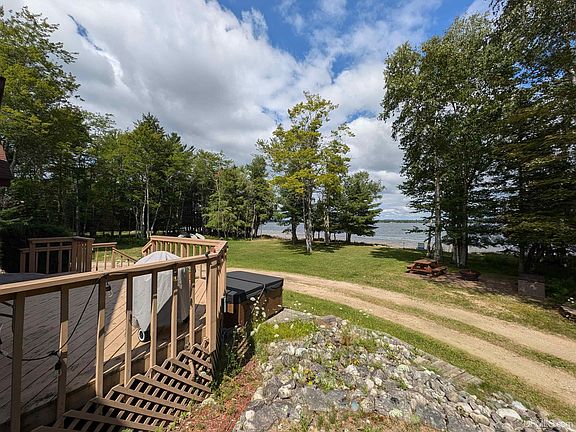 Discover scenic 840 acre Gulliver Lake and the beautiful sandy frontage of this large parcel boasting 224.5' of frontage. The large chalet-style 4-bedroom, 3-bath residence has over 3,200 square feet of living space, features panoramic windows and vaulted ceilings that create a grand and airy atmosphere, awash in natural light. At the heart of this stunning retreat is a majestic floor-to-ceiling stone fireplace, providing a warm focal point in the spacious living area. The view of the lake from here is truly unparalleled—a picturesque scene you have to see to believe. Step outside to enjoy the new hot tub, strategically placed to offer serene lake views for the ultimate relaxation experience. The generously sized bedrooms serve as private havens of comfort. The upper level features a huge bathroom equipped with a Jacuzzi and bidet, offering a spa-like atmosphere right at home. Storage is plentiful with both an attached garage, a detached garage, plus a pole building for all your recreational storage needs. The convenience of a circular driveway adds to the home's accessibility and charm. Whether it's swimming, fishing, or boating, the lake is your personal playground. This is more than a home—it's a lifestyle. Seize this rare opportunity to make your lakefront living dream a reality. Call today for an exclusive viewing!