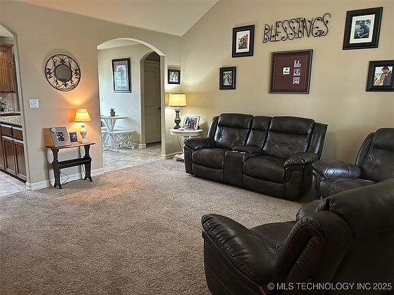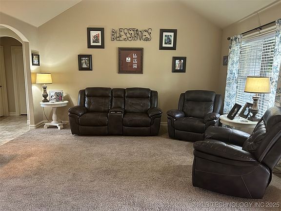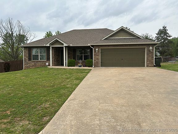Adorable 3-bedroom 2 bath home in the Fort Gibson school district. Walk into the cozy living room with vaulted ceiling. Then into the kitchen with stainless steel appliances. Enjoy the eat-in kitchen with bar and breakfast nook. Split bedrooms. The master bedroom has a trey ceiling with night light and walk-in closet. Granite counter tops throughout the home. Curved archways through the house adds some character. Large, fenced in backyard for family gatherings. Beautiful rose bushes along one fence row. Thornless blackberry bushes on one side of the storage building for all of your yard work tools. Deck off the back for enjoying coffee in the mornings or cool evenings.