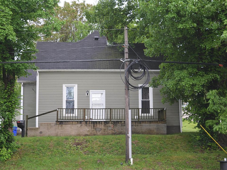 Spacious house with over 2000 sq ft with a huge detached 34x36 garage. House has tons of potential and owner is completing the following on the house prior to closing. Electrical will be updated. The upstairs will have the following completed: patching, painting, window door trims, carpet, and baseboards. The main floor has beautiful wood floors that were refinished and will be stained. The house features 5 or 6 bedrooms and 1 full bathroom. Ideal location for a large family, commercial or potential rental for an investor. The lot is very large with .5 acres within the middle of the town. Near restaurants and library across the street.