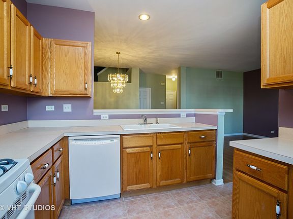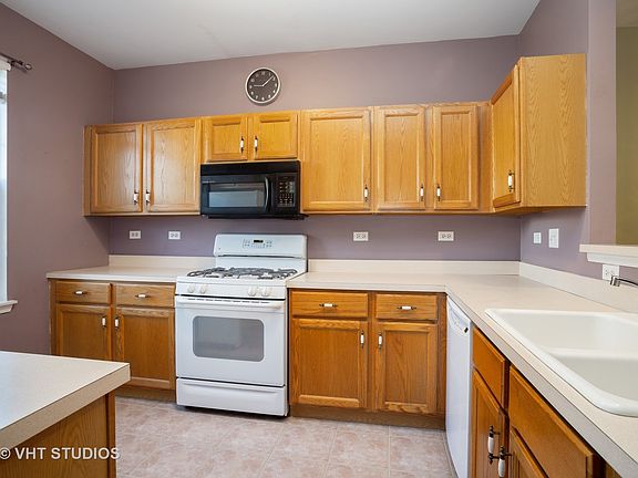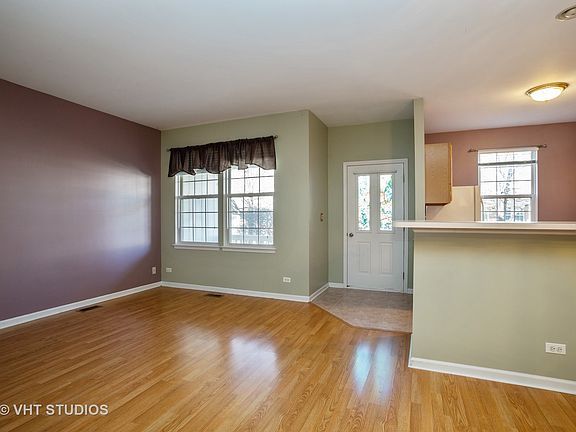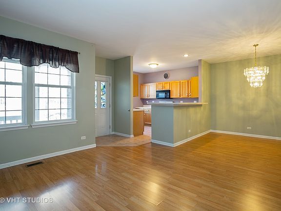 Beautifully maintained 2 bed, 1.1 bath townhouse in the wonderful Aragon Association. This unit offers an open floor plan, breakfast bar, 9' ceilings on main floor with vaulted ceilings upstairs. Laminate floors in the living room and dining room with ceramic tile in kitchen. Two large bedrooms with closet organizers. 1st floor laundry with side by side washer/dryer. Oversized car garage with room for storage. Large covered front porch. Located near expressways (355 & 290), Metra station, dining, shopping and schools! Additional exterior parking space included in price! Make this your home today!