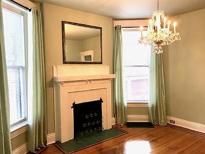 Large, Sunny 2 bedroom, 2 bath apartment in Old Louisville. Bright First Floor apartment with refinished hardwood floors and mini blinds throughout. Large living room with ceiling fan and drapes; Dining room with chandelier, drapes, faux fireplace and mirrors; Eat-in kitchen with appliances (including dishwasher and microwave); 2 updated bathrooms; 2 bedrooms with ceiling fans and closets. Central A/C and heat. Additional storage in hallway and basement. Covered front porch with seating area. Small rear patio. On Street Parking. $875.00 per month 12 month lease $875.00 Security Deposit due at signing. 2-3 persons possible. No Smoking Building. No Pets. Application fee $45.00 No Pets. No Smoking Building.