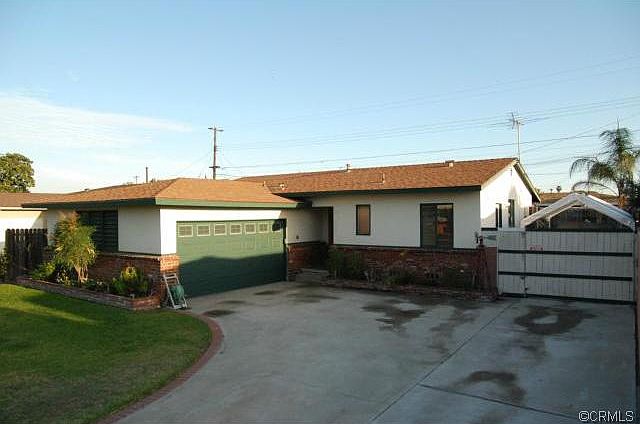 With gated parking for your boat or other toys, this lovely 3-bedroom home is just right! 2-car attached garage and RV-sized driveway, framed by brick accents, lawn and garden, give a nice curb appeal. Inside: varnished hardwood floors throughout, spacious living room and formal dining room, and updated eat-in kitchen with Corian counters and newer oak cabinets. The full bathroom features modern furniture-style cabinetry and granite counter, plus direct access to the garage. There is a convenient half bath for your guests. And out back: a POOL! Party at your house!This great starter home is only three blocks from Woodcrest Park, within a mile of several other parks including the Wednesday morning Farmer's Market, raquetball and skate park at Independence Park, 5 minutes to Fullerton's downtown shops, restaurants and museums, and only 5 miles to Cal State University Fullerton. It's close - but not too close - to both the 91 and 5 freeways to make your commute easy as pie!