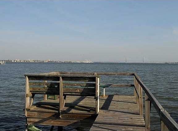 A DOCK WITH STIMULATING DEEP WATER VIEWS & YOUR OWN SANDY BEACH, 2 lots being sold together. The views from this property are such that you see in some of the works of Charleston's finest artists. Located in one of Charleston's finest neighborhoods, Eastwood is close to downtown Charleston, West Ashley and Folly Beach. Standing on the front porch you can see straight through the house to Cooper River and the Arthur Ravenel Jr. Bridge. The living room, dining room and rear bedroom have enormous sliding glass doors to bring the views in throughout the house. The interior features beautiful hardwood floors and ceramic tile in the bath. Exterior features in addition to the views: Majestic Oaks, Walkways created with old bricks from various places, rose gardens, fenced yard, 2-car carport, attached 2-car garage. From the front yard, marsh views across the street. The landscaping surrounding this charming vintage home is bliss. The outbuildings provide storage and in addition hold the custom made storm panels for all of the windows and doors. From the backyard, enjoying every step, take the dock out to the clean sandy beach or continue out to the harbor. The water at the end of the dock at low tide is less than a foot deep. This has to be one of the best properties available on James Island.