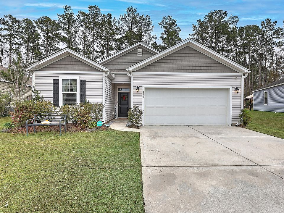 Welcome to this beautifully maintained single-story gem in the highly sought-after Spring Grove Plantation. Sitting on a fantastic lot with fresh curb appeal and easy-to-maintain landscaping, this home offers the perfect blend of comfort, function, and style all on one convenient level.Step inside to find wood-grained LVP flooring flowing seamlessly throughout, creating a cohesive and elegant feel. The foyer welcomes you home. Off to the left of the foyer leads to a secondary hallway, where two well-appointed bedrooms, a shared bathroom, and a storage closet offer privacy and practicality. Continue forward to the heart of the home, where abundant natural light pours into the open main living spaces. Neutral paint tones complement any decorating style, making this hometruly move-in ready. The spacious kitchen boasts classic white shaker cabinetry, rich granite countertops, modern stainless steel appliances, generous prep space, and a bar-top for extra seating perfect for both everyday living and entertaining. Just off the kitchen, the dining area overlooks the backyard through a large sliding glass door. The expansive living room provides plenty of room to relax and gather. Tucked quietly at the rear of the home is the owner's suite, featuring a large walk-in closet and a private en suite with all the comforts you're looking for. Step outside to enjoy the screened-in porch and fully fenced backyard, offering a blank slate ready to become your outdoor oasis. With a wooded buffer behind the home, you'll appreciate the added privacy and peaceful view. Spring Grove Plantation is a desirable community known for its convenient location near schools, shopping, military bases, highways, recreation, and more. Amenities are unmatched for the value and include a neighborhood pool, multiple play parks, dog park, boat/rv storage, walking and jogging trails, green spaces and so much more. This well-designed home offers a smart layout with no wasted space truly a place where you'll feel right at home from the moment you arrive.