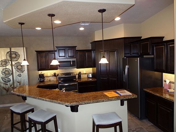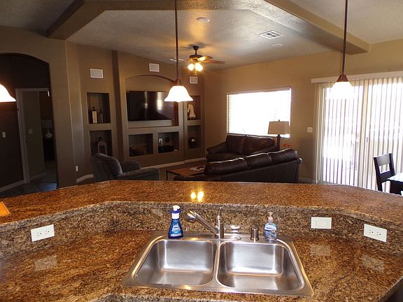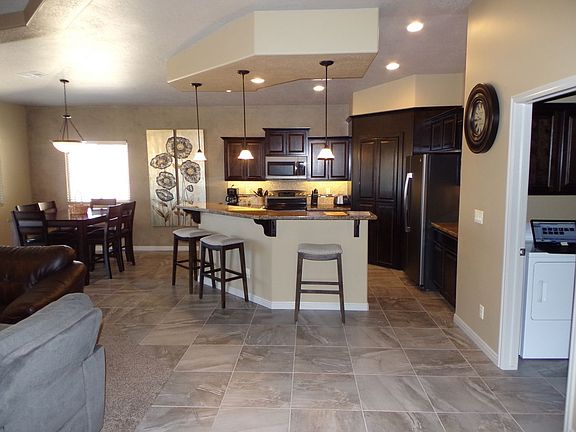 This fabulous Stone Haven home 1,719 sq ft floor plan with 3 bedrooms 2 baths, 3 car garage 38 feet on the single car with 8 foot garage doors for all those long trucks, very large walk-in pantry with butler pantry door, extra large covered patio with built-in Barbeque outdoor fridge great for entertaining and Enjoying the distant virgin Mountains. This home also comes with granite counter tops in kitchen and master bath and step and staggered raised panel cabinets throughout home and 18" tile floors in high traffic areas. This is the perfect home for anyone wanting to just relax and enjoy the views.