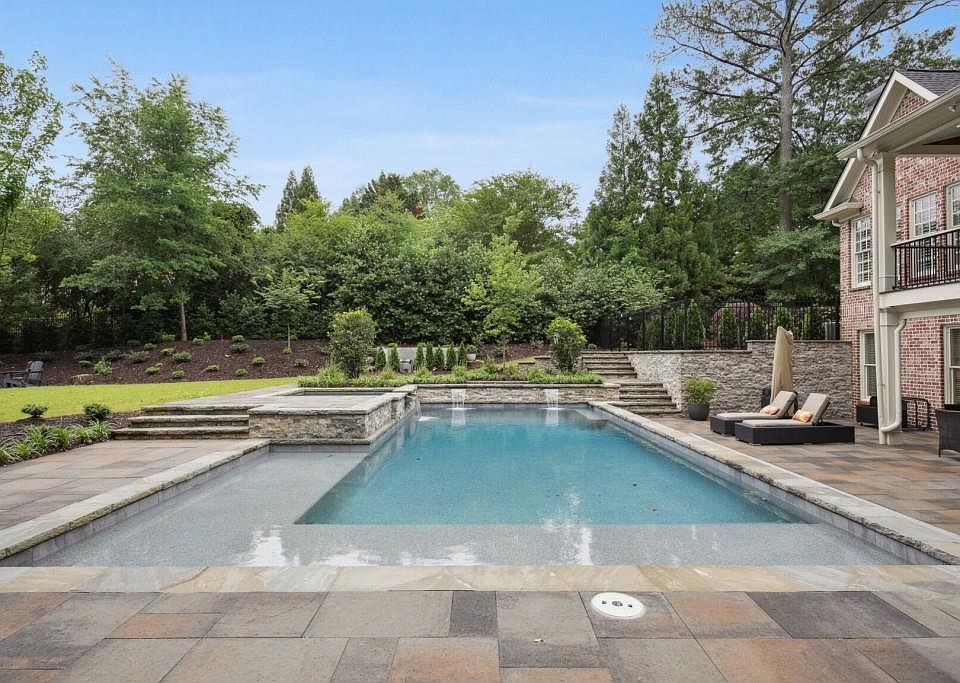 Exquisite home with fabulous new saltwater pool, located less than a mile from Chastain Market, walking distance from Windsor Meadows Park, easy access to top private schools, 285/GA400, Perimeter and hospitals. This completely updated home will not disappoint you! The chef's kitchen offers a large island, Calcutta marble counters, marble backsplash, gas stove and griddle, as well as a walk-in pantry. The inviting keeping room with stone fireplace is connected to the breakfast room and kitchen and is the perfect place to gather and relax inside. Prefer to enjoy dinner outdoors, or watch TV outdoors? Step onto the covered back porch with IPA flooring and listen to sounds of water coming from the stunning saltwater pool and spa. The main floor offers a perfect floorplan. From the living room with coiffured ceilings, fireplace and custom built-ins, you can view the oversized covered back porch. When you enter the home from the inviting front porch, you will find a light-filled library with built-ins and French door, allowing you to work from home without any interruptions. The spacious dining room provides easy access to a beautiful butler's pantry with marble backsplash and beverage refrigerator. Looking for a retreat, wander upstairs to the primary suite. The recently remodeled primary bathroom, and two custom walk-in closets will not disappoint! All bedrooms have private bathrooms and large custom walk-in closets. The terrace level is a perfect set-up for multi-generational living, with easy access to the fabulous new saltwater pool and level backyard. The terrace level offers a bedroom, full bathroom, full size kitchen, living and dining area, secondary laundry, as well as a TV room, gym, craft room and playroom. This home has everything to offer for the today's lifestyle!