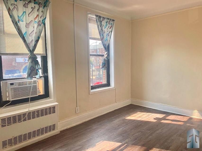 Large two bedroom unit in a second floor walkup of a commercial building. Extra quiet! Railroad style unit, but with large windows in each of the rooms and skylights in kitchen and bathroom, the unit gets very good natural lighting. This apartment can be used as a 2BR with an additional area to be used as the living space, or a 1BR with 2 other rooms as living space. Approximate dimensions are: Middle living space: 10.5' x 11' Room 1: 14' x 10' (no closets) Room 2: 12' x 13' (2 closets) The apartment features high ceilings, great size bathroom with large tub, eat-in kitchen, and access to a private outdoor rooftop space! Surrounded by tons of shopping and eateries, just steps from very good elementary and junior high school and less than 2 blocks from the NQW express trains. Heat and hot water are included. No Pets Please. No laundry in building but multiple laundromats available less than 1 block away. 1mo broker fee applies