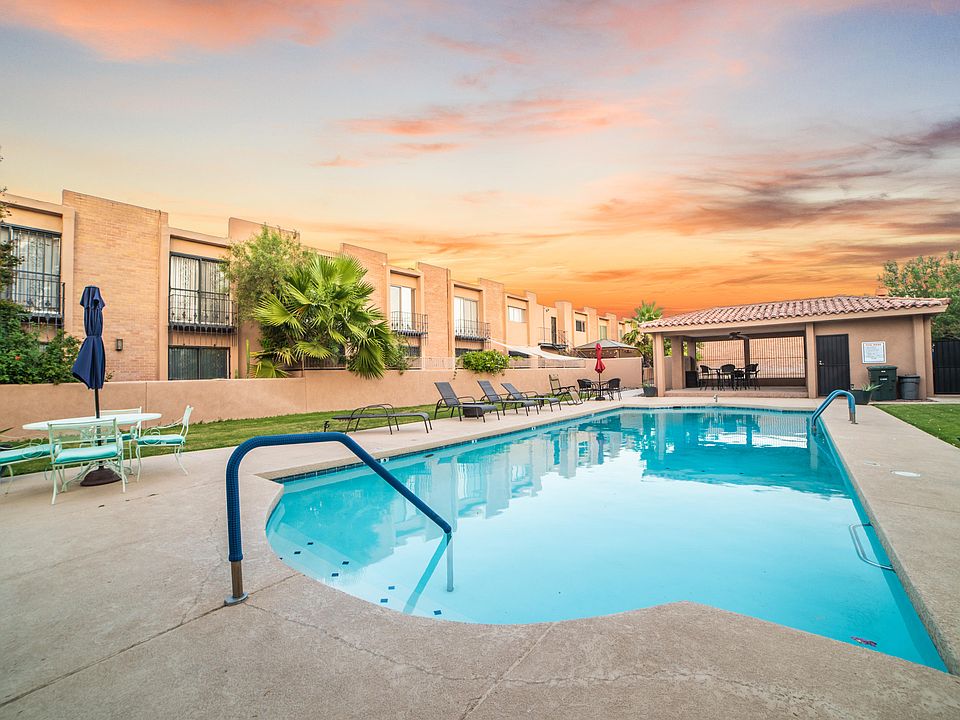 Estate sale opportunity on desirable ground floor unit priced $50K below the ''Zestimate''! Spacious 2,122 SqFt single story with no stairs/steps, three bedroom and two full bath condo in thriving Central Tucson. HOA dues include: water, trash, sewer, community pool, one covered parking spot, and common area maintenance. Featuring: Split floor plan, covered parking, internal laundry room (washer and dryer included), plantation shutters, exposed brick, diagonal tile in kitchen, original mid-century modern kitchen, double sliders out great room to patio, large brick wood burning fireplace in massive great room, cool retro original lighting and fixtures. Affordable and priced to sell!